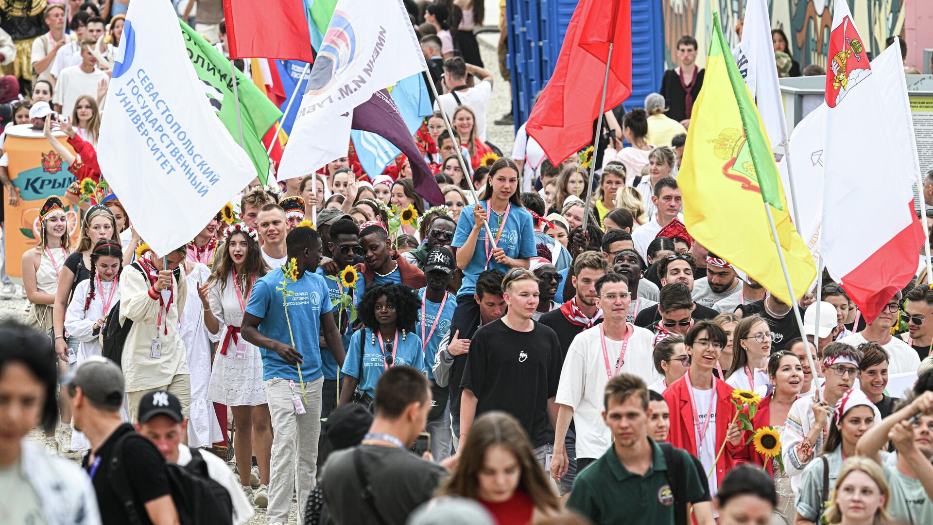 АРТ", который проходит в Симферополе с пятницы по воскресенье, ожидает рекордное количество участников - более 100 тысяч человек. Об этом сообщил первый заместитель руководителя администрации президента РФ Сергей Кириенко. Программа фестиваля включает пять направлений: музыку, театр, изобразительное искусство, кино и шоу. Молодые художники, музыканты, актеры и режиссеры на площадке фестиваля создают творческие произведения, отражающие традиционные духовно-нравственные ценности и любовь к Родине.